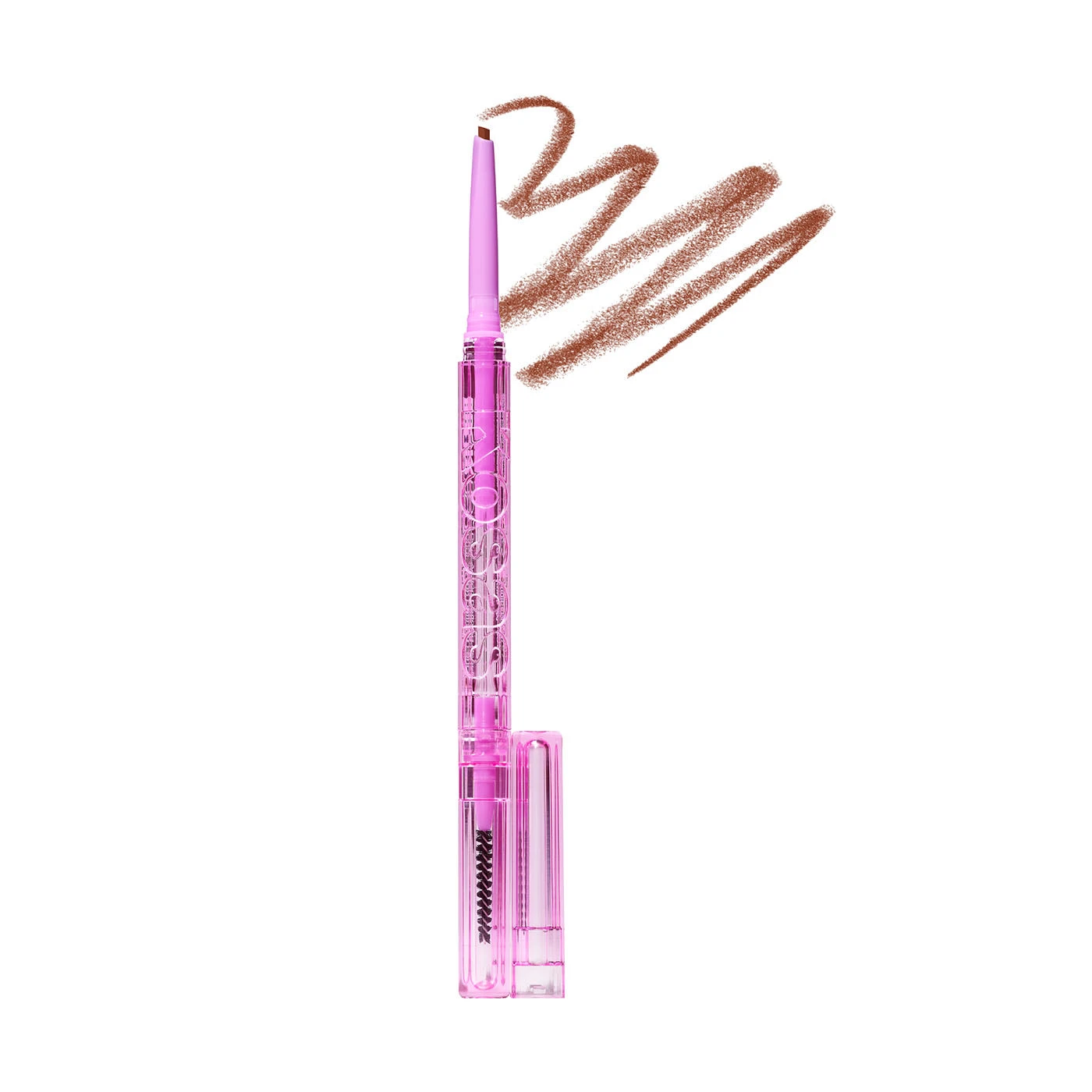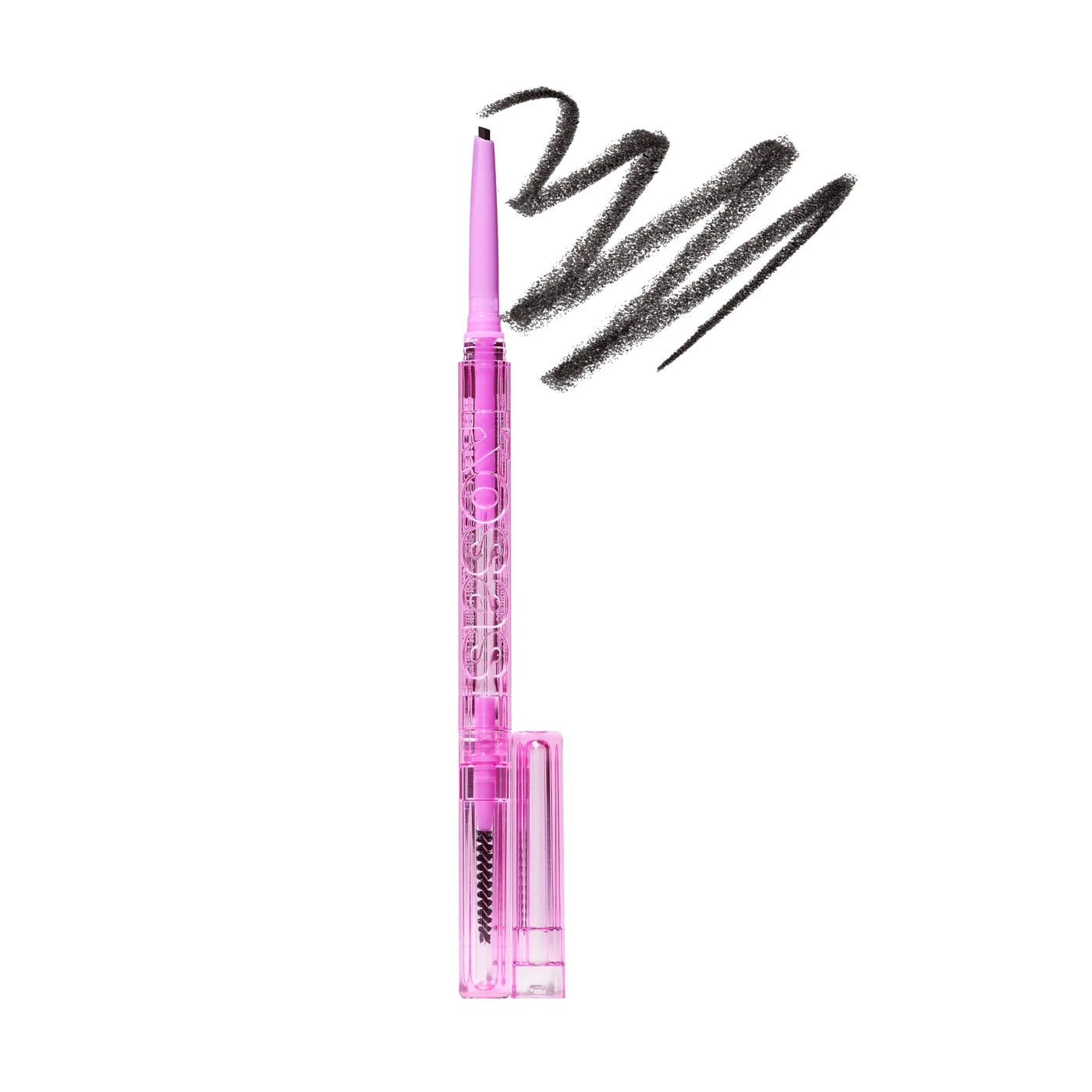 When you open it, you’ll first notice the Brow Pop pencil tip’s triangular shape: the thin tip is designed to easily create thinner, hairlike strokes, while the thicker side can be used to fill in sparse areas that require a little more oomph. Then, you can use the opposite end of the pencil, which features a spoolie brush designed to help you shape your handiwork. And you can rest assured that the color will stay: this performance-focused formula doesn’t smudge or transfer.